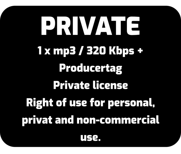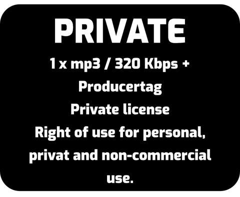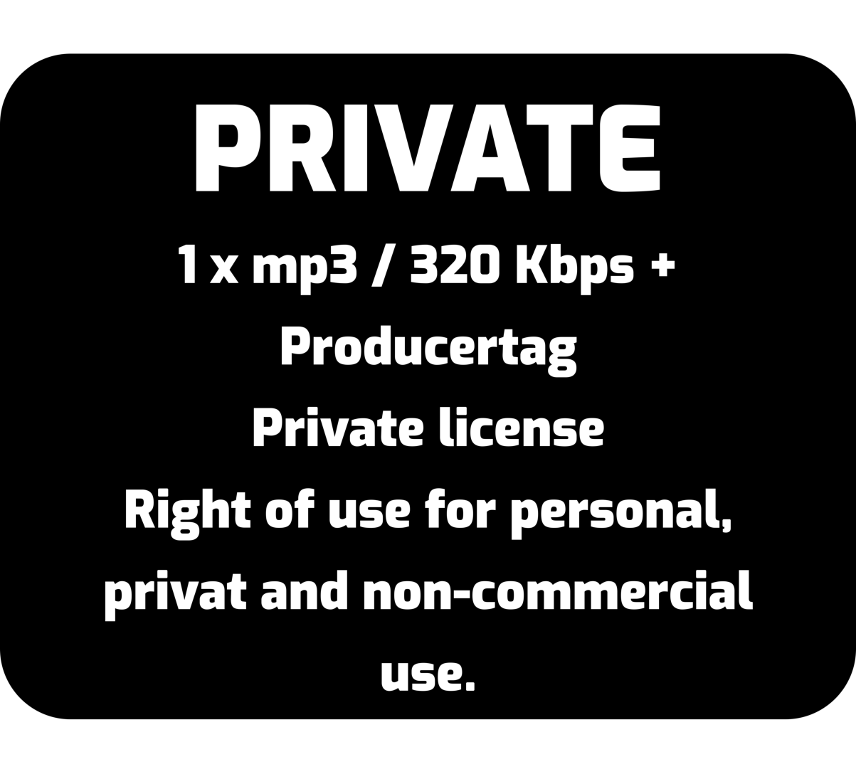Diese Lizenz ist für den Privaten und nicht kommerziellen gebrauch. Das Musikstück darf weder auf einer Platform veröffentlicht werden noch Vermietet, Lizensiert, oder sonst weiterverkauft werden. Komerziell nutzbar mit der Lizenz Diamant.