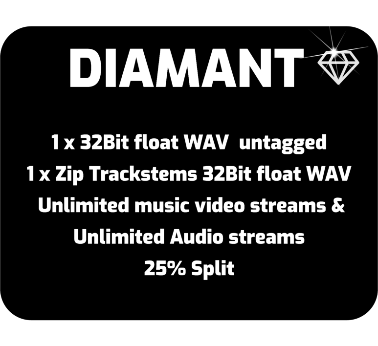 The Diamant license can be used for commercial distribution in the streaming services plus a music video on your YouTube channel. This license is valid for an unlimited number of streams. Generate as many streams as possible! 25% Split